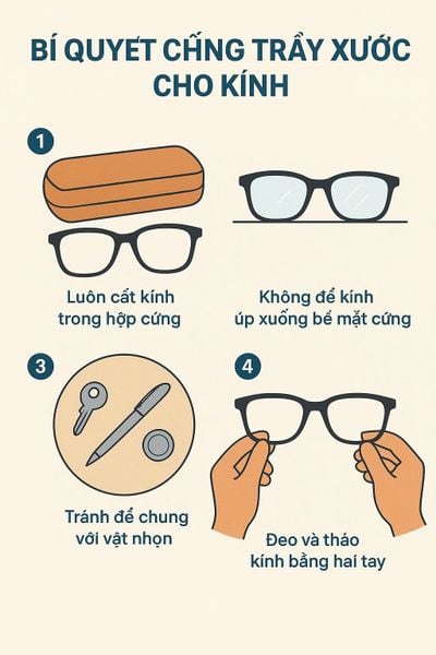 - Tránh để chung với vật nhọn: Chìa khóa, bút bi, tiền xu trong túi quần áo hay balo có thể vô tình làm hỏng kính.