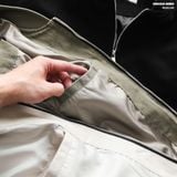 + Chất liệu: Vải kaki wash garment cao cấp, bề mặt mịn, đứng form nhưng không cứng; dày vừa, ít nhăn, giữ phom tốt. Lớp trong trơn mát, mặc dễ chịu cả ngày
