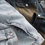 Chất liệu: Denim (jean) dày dặn, xử lý wash tạo hiệu ứng bạc màu tự nhiên, đứng form, bền chắc