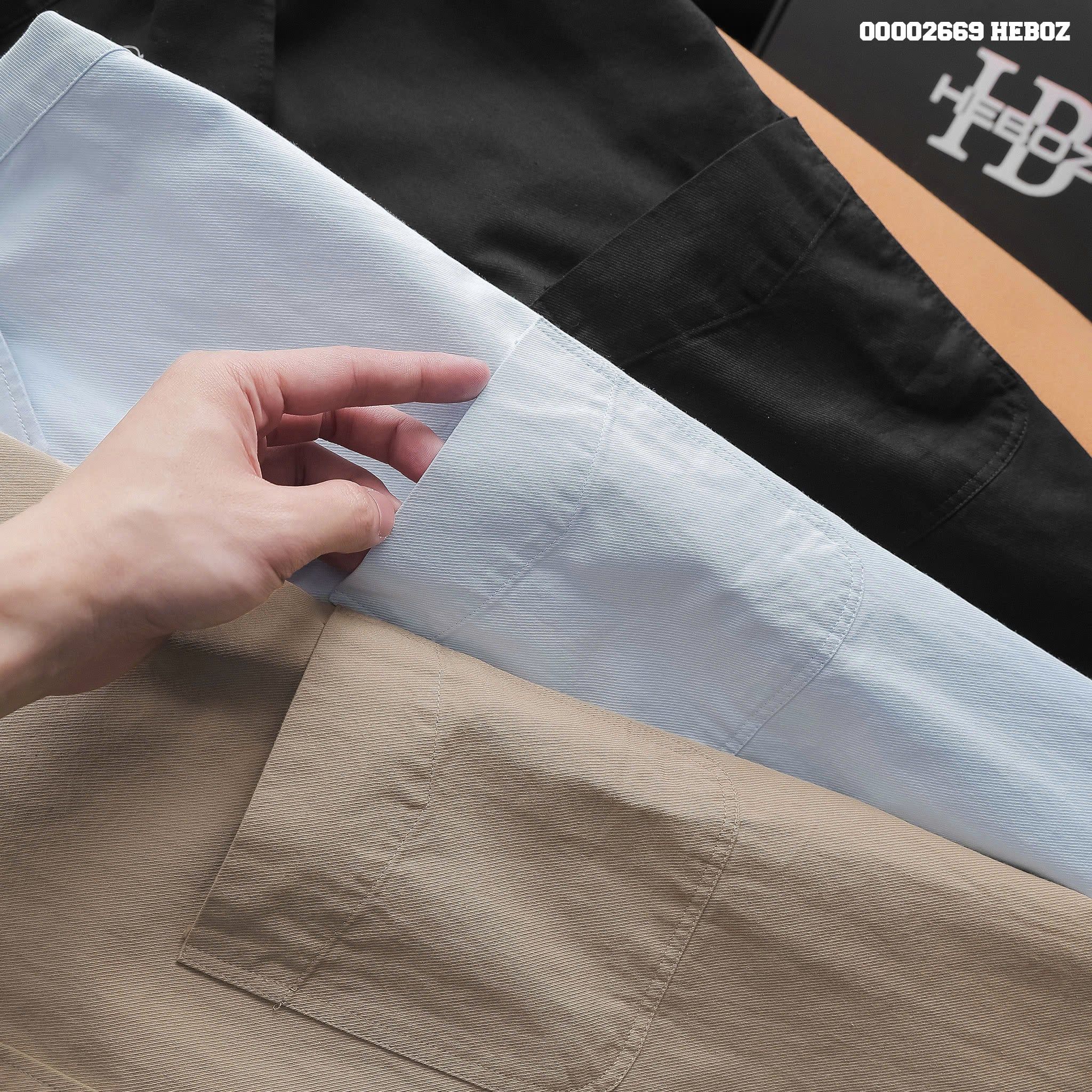 - Chất liệu: Vải kaki mỏng nhẹ, bề mặt dệt gân xéo, có độ co giãn nhẹ, thấm hút mồ hôi tốt.
