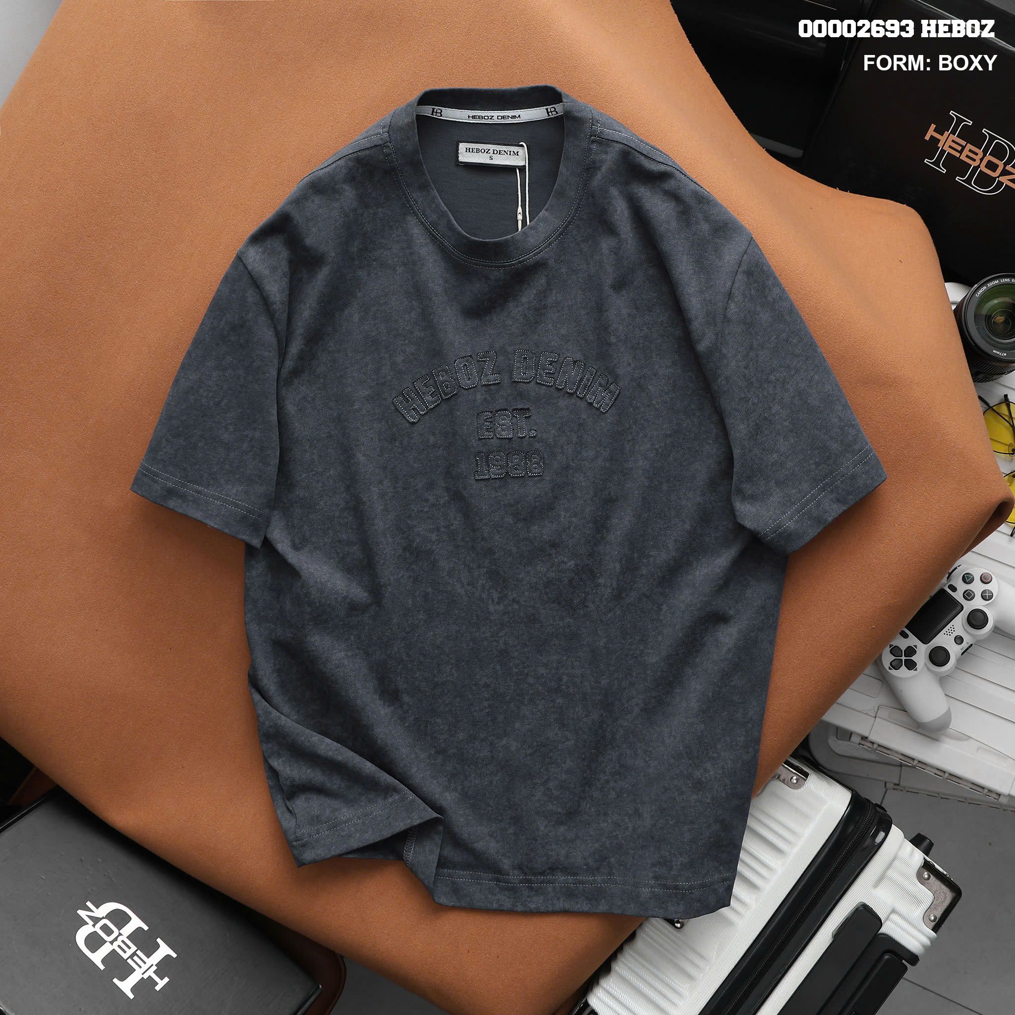 Áo thun nam Heboz wash chữ khối 3M - 00002693