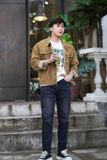 + Áo khoác jeans lai tua nhẹ ở cổ, túi áo và gấu áo.