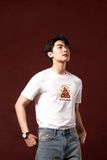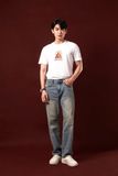 + Áo thun cổ tròn có bo cổ dệt đồng màu vải, hình in cao cấp trước ngực, tem dệt cam trang trí sau cổ áo.