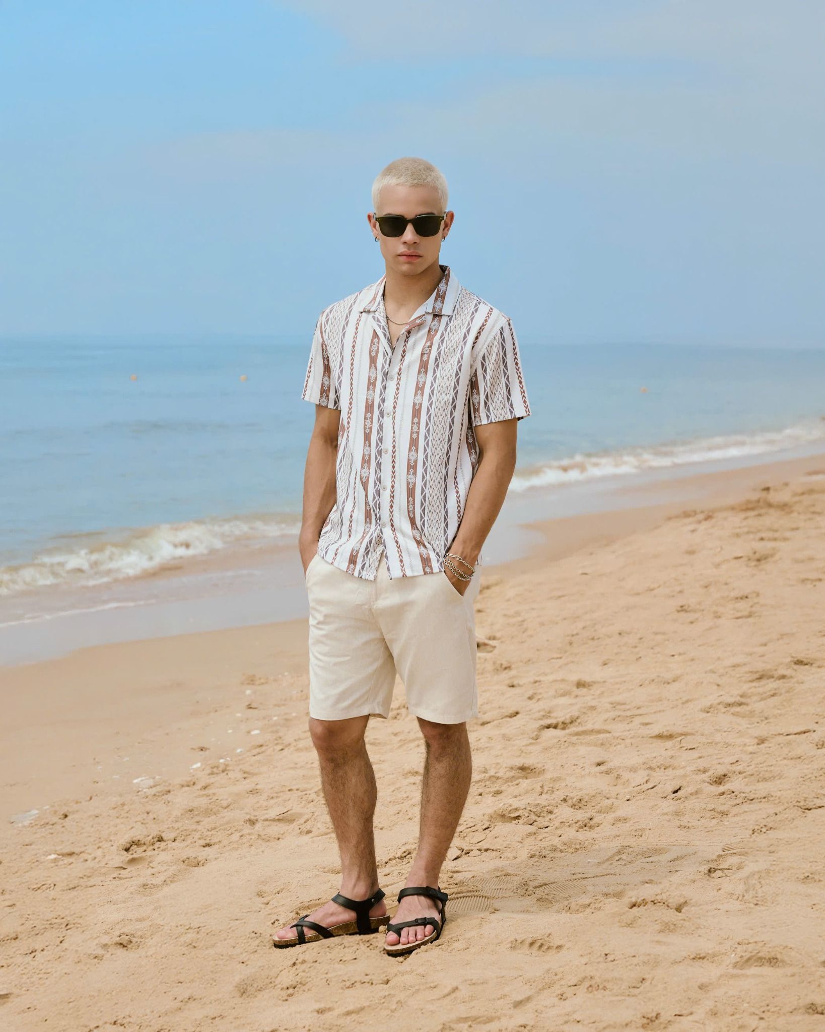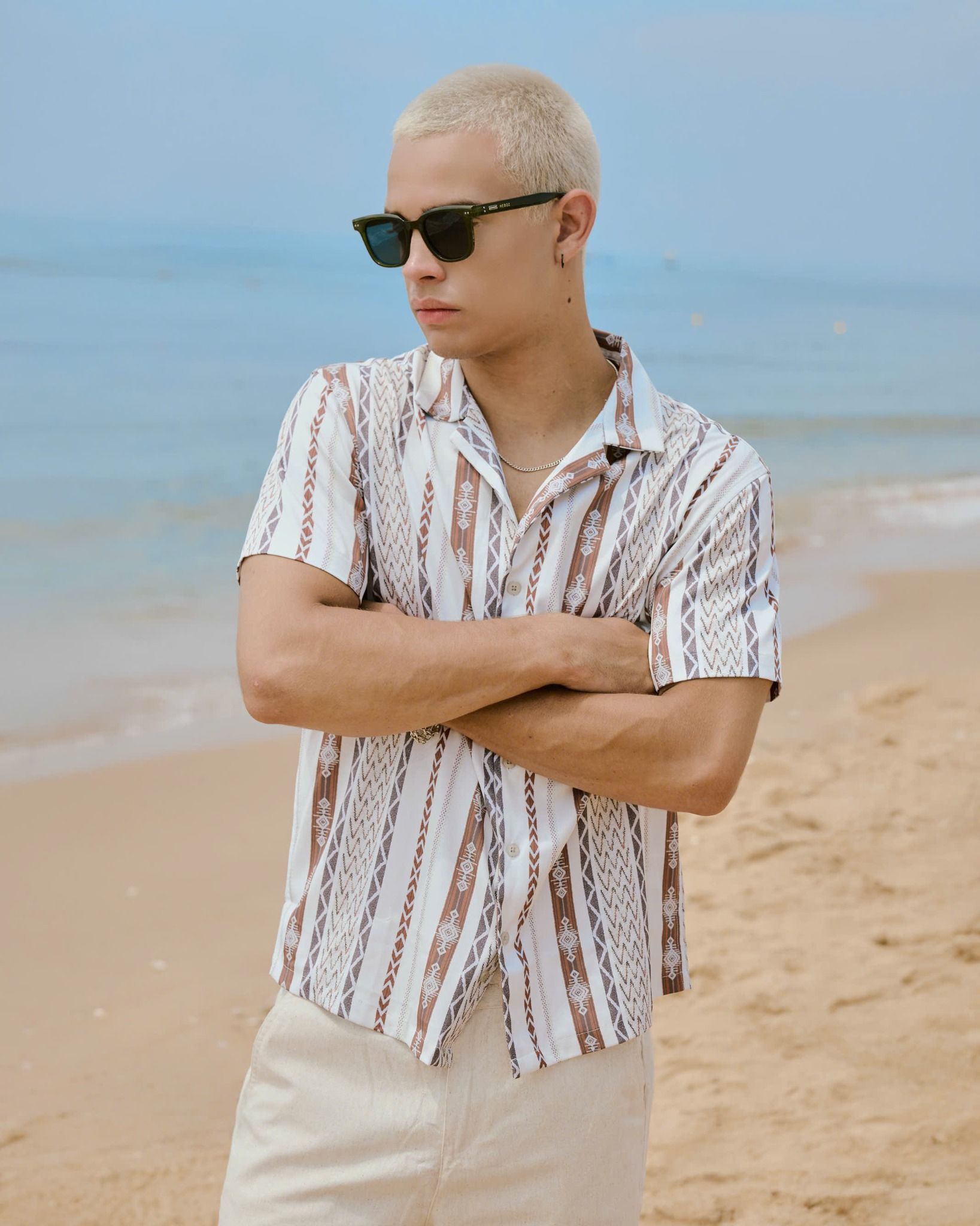 - Kiểu dáng: Áo sơ mi ngắn tay cổ pijama, có in hình họa tiết pattern tràn áo, dễ dàng phối đồ