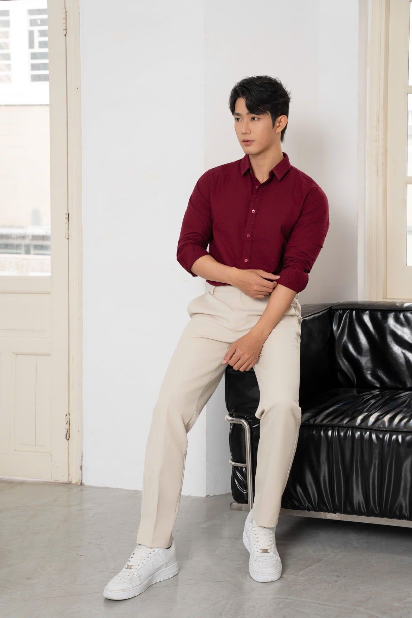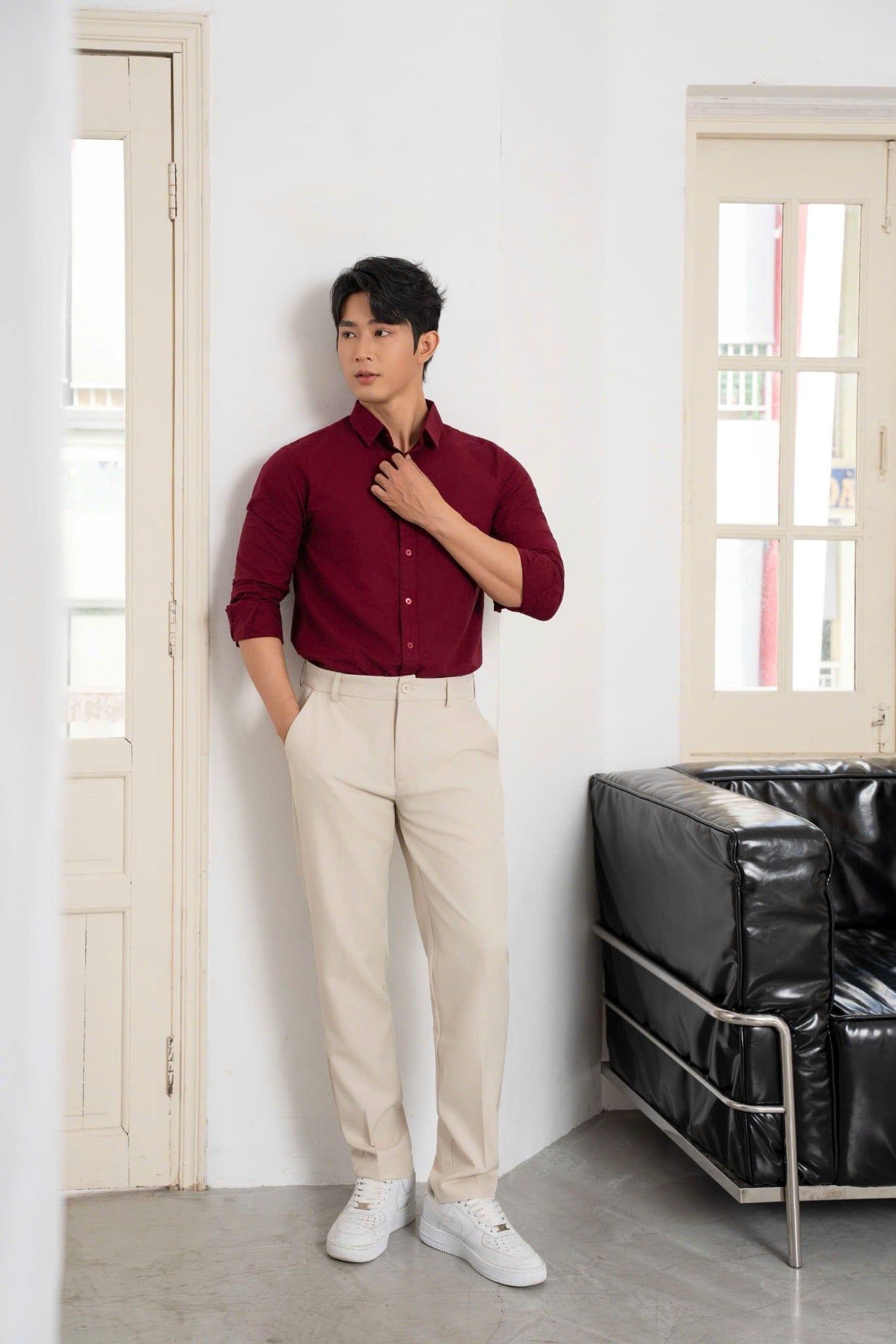 + Vải tây cao cấp pha cotton – spandex, bề mặt mịn, đứng form nhưng vẫn có độ co giãn nhẹ.
