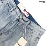 + Màu xanh denim wash màu xanh nhạt cao cấp, có hiệu ứng phai màu tự nhiên ở phần đùi và đầu gối, tạo điểm nhấn bụi bặm, nam tính.