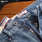 + Màu xanh denim wash màu xanh cao cấp, có hiệu ứng phai màu tự nhiên ở phần đùi và đầu gối, tạo điểm nhấn bụi bặm, nam tính.