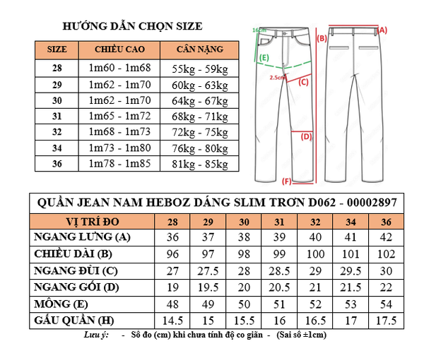 Quần jean nam Heboz dáng slim trơn D062 - 00002897