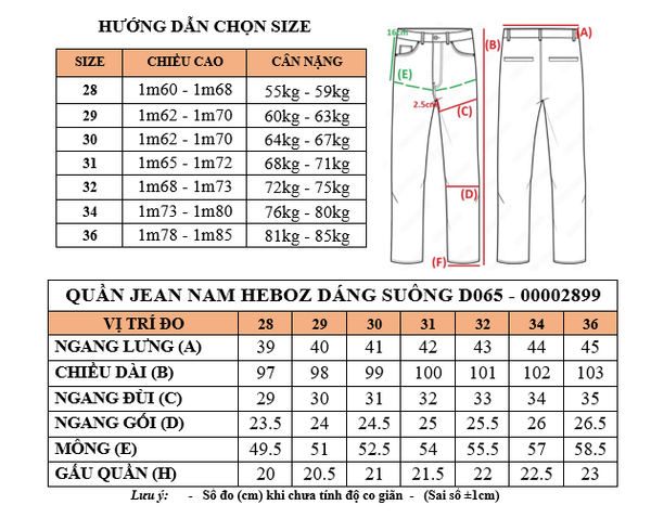 Quần jean nam Heboz dáng suông D065 - 00002899 là lựa chọn hoàn hảo cho phái mạnh yêu thích phong cách trẻ trung, hiện đại và thoải mái. Với thiết kế form straight (suông) dễ mặc, phù hợp cho người từ 55–85kg, sản phẩm mang lại vẻ ngoài năng động và tự tin trong mọi hoàn cảnh.
