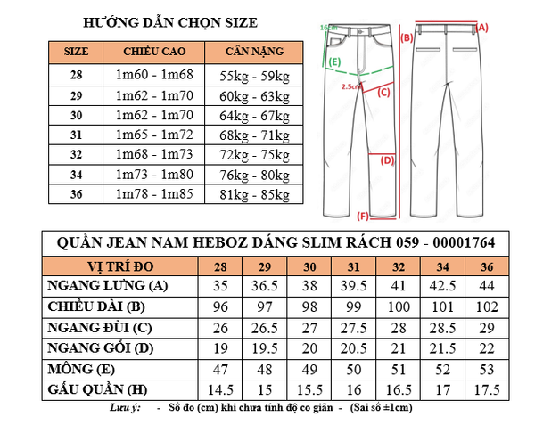 Quần jean nam Heboz form slim rách 059 - 00001764