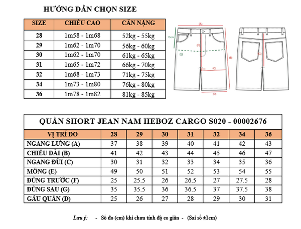 Quần short jean nam Heboz cargo S020 - 00002676